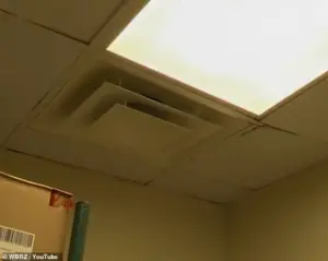 The scene was a stark illustration of the measures staff had to take to survive the relentless downpours. ‘We get rained on in the office,’ Bowlin explained. ‘We have to keep our garbage bags over our stuff because when it rains, everything gets soaking wet.’ The makeshift solutions, while necessary, underscored the lack of permanent fixes to the structural issues plaguing the building.
