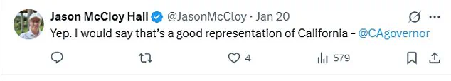 Others, however, argued that the clip was a hyperbolic but accurate portrayal of the epidemic’s impact in certain regions, with one user tagging California Governor Gavin Newsom and stating, ‘Trolling Democrat-led cities…’