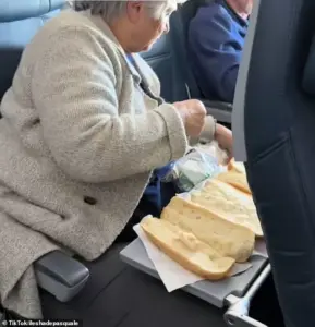 The woman seated across the aisle from Murphy reportedly marveled at the sandwich, her expression a mix of surprise and admiration.