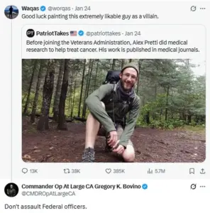 Bovino’s social media activity, which included multiple tweets criticizing users who shared biographical information about Pretti, drew sharp reactions from lawmakers and the public.