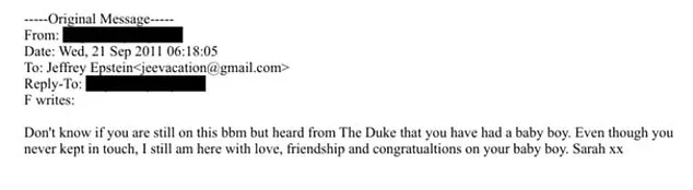 Speculation about a potential child with Epstein has only deepened the intrigue. A message from Sarah Ferguson, the former Duchess of York, allegedly congratulates Epstein on the birth of a ‘baby boy,’ though no evidence has confirmed the claim. Shuliak is the most likely candidate, given her proximity to him, but Epstein’s brother, Mark, has denied the existence of any offspring. ‘My brother did not have a child,’ he told the Daily Mail.
