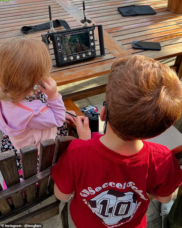 In one photo, Archie is seen holding up a clapperboard, while another captures him and his four-year-old sister, Lilibet, watching camera operations on set.